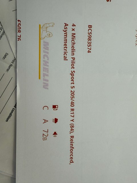 Four brand new Michelin Pilot Sport 5 tyres fitted in October